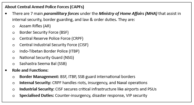 Context: Recently, the government introduced the Central Armed Police Forces (General Administration) Bill, 2026, in the Rajya Sabha.
